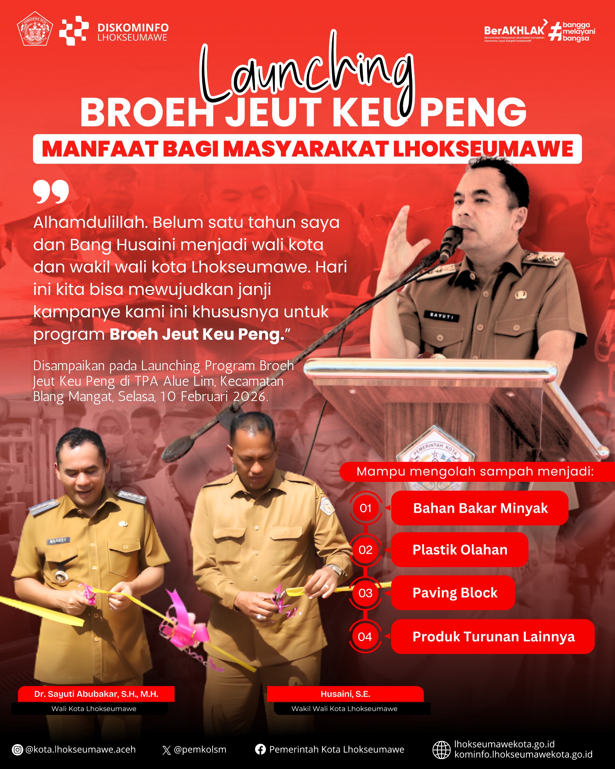 Lhokseumawe, 12 Februari 2026, Sekretaris Daerah Bapak A.Haris, S.Sos, M.Si, Membuka secara resmi Acara Pembukaan Bimbingan Manasik Haji Terintegrasi Kota Lhokseumawe Tahun 1447 Hijriah / 2026 Masehi…